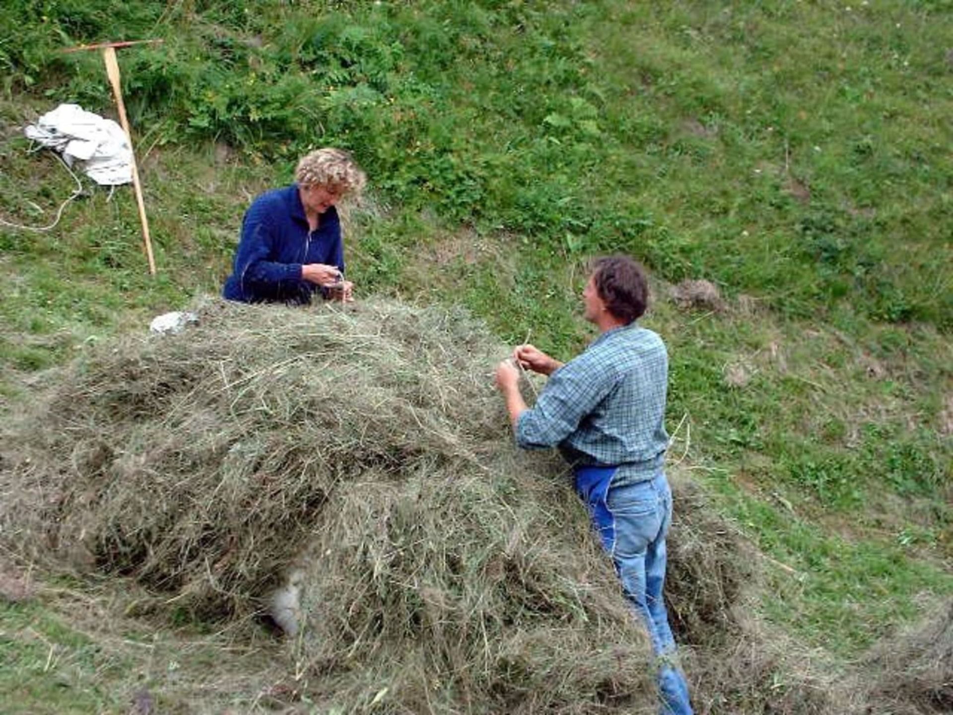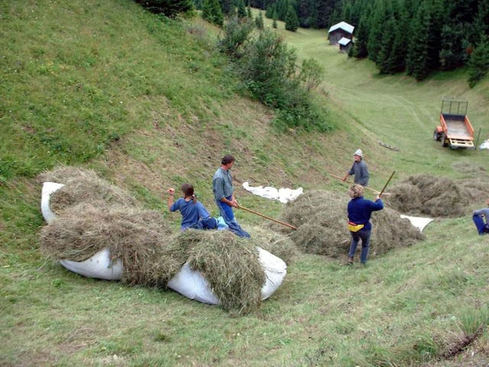 During the three summer months, when the cows are in the mountain hut for free grazing in the high mountains, the hay is collected, which will be used to feed the animals throughout the rest of the year in our new barn in Masarei.